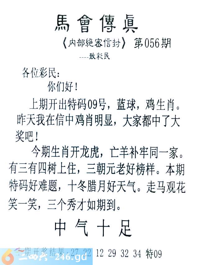 056期:首发推荐:≮馬會傳眞≯→(香港正版)