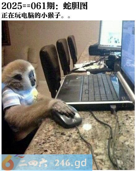 061期蛇胆图:正在玩电脑的小猴子。。