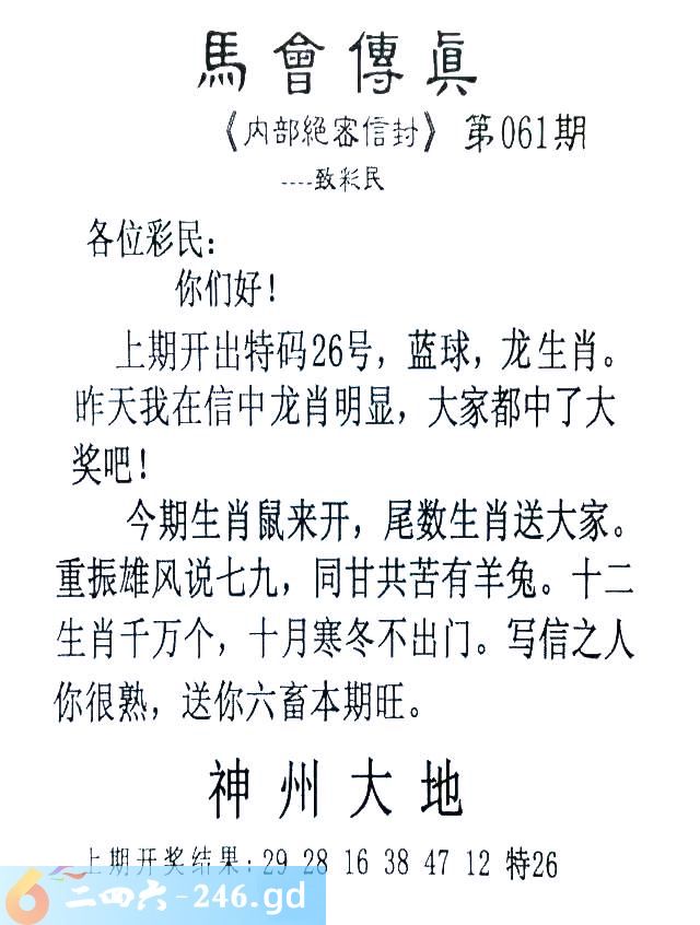061期:首发推荐:≮馬會傳眞≯→(香港正版)