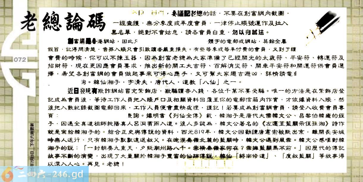 072期:六合皇金句/老总论码/萧公子/林大师/五行夺码/老总信箱截图