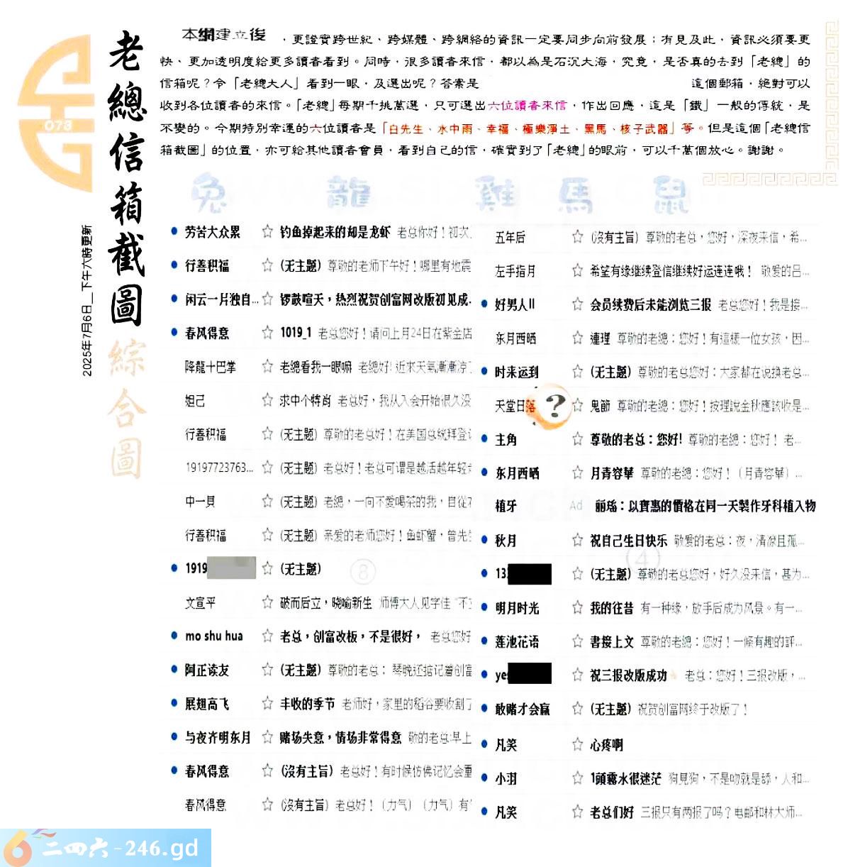 073期:六合皇金句/老总论码/萧公子/林大师/五行夺码/老总信箱截图