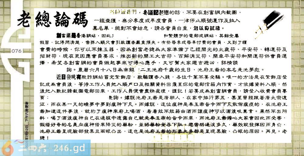 076期:六合皇金句/老总论码/萧公子/林大师/五行夺码/老总信箱截图