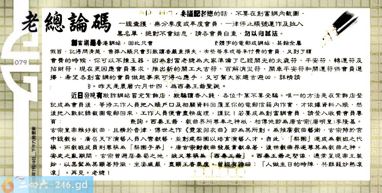 079期:六合皇金句/老总论码/萧公子/林大师/五行夺码/老总信箱截图
