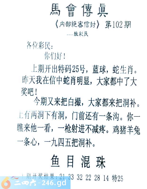 102期:首发推荐:≮馬會傳眞≯→(香港正版)