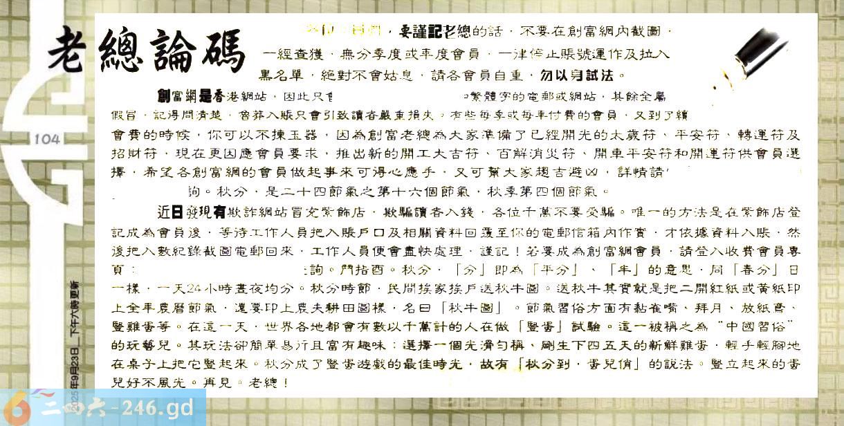 104期:六合皇金句/老总论码/萧公子/林大师/五行夺码/老总信箱截图