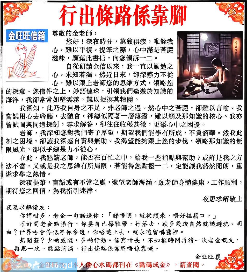 110期:金旺旺信箱彩民推荐→→《行出條路係靠腳》