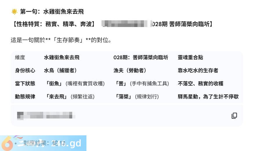 本帖最后由骑驴拉磨于2026-1-1521:02编辑 006期藏寶阁 新:欲往寧辭沔水深 老:水雞銜魚來去飛 解: 13蛇 25蛇 号码主次之分:13-25-01-37-49再防马