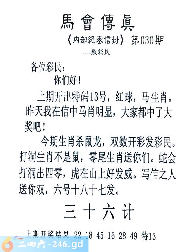 030期:首发推荐:≮馬會傳眞≯→(香港正版)