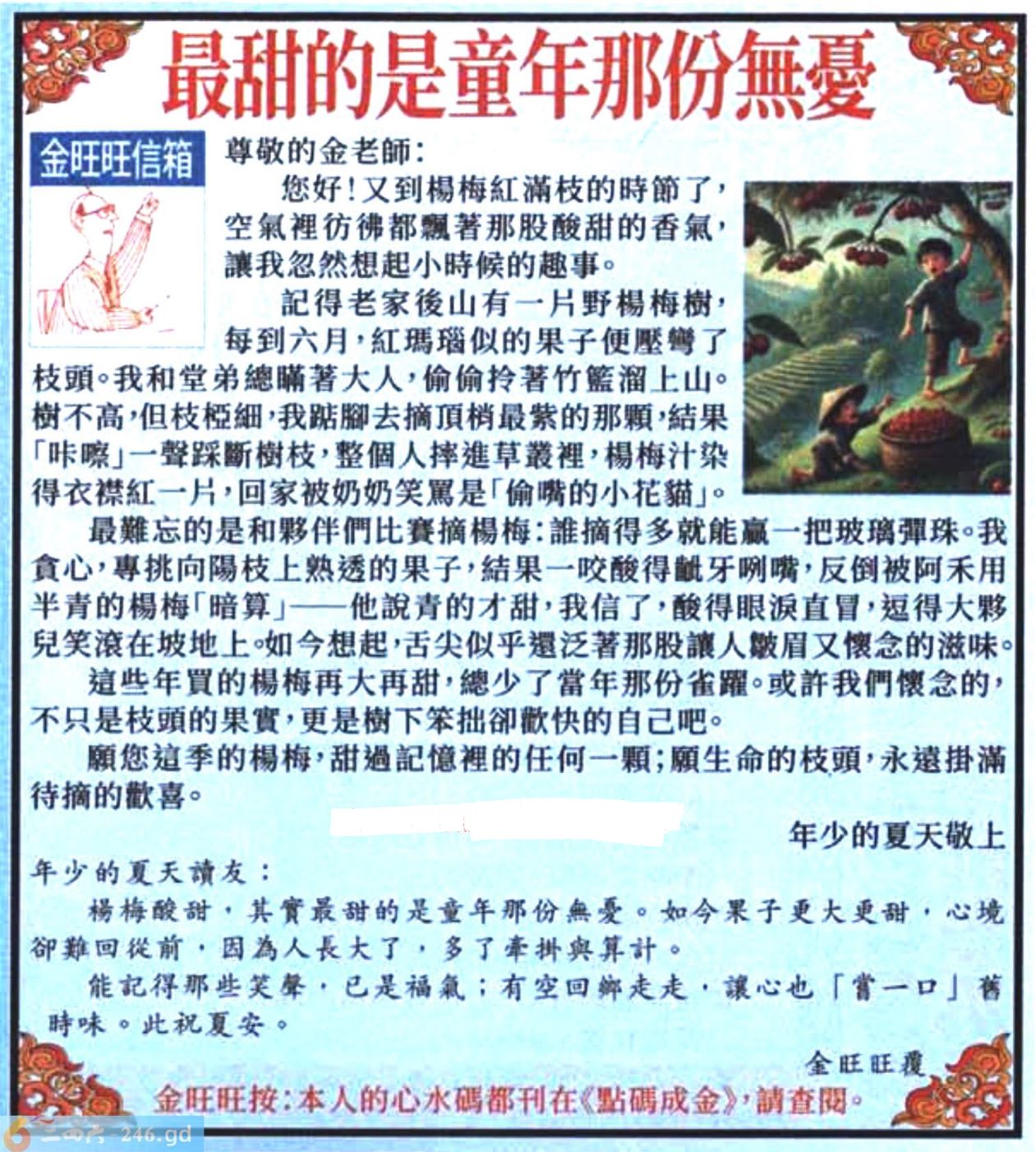 2026042期042期:金旺旺信箱彩民推荐→→《最甜的詩童年那份無憂》
