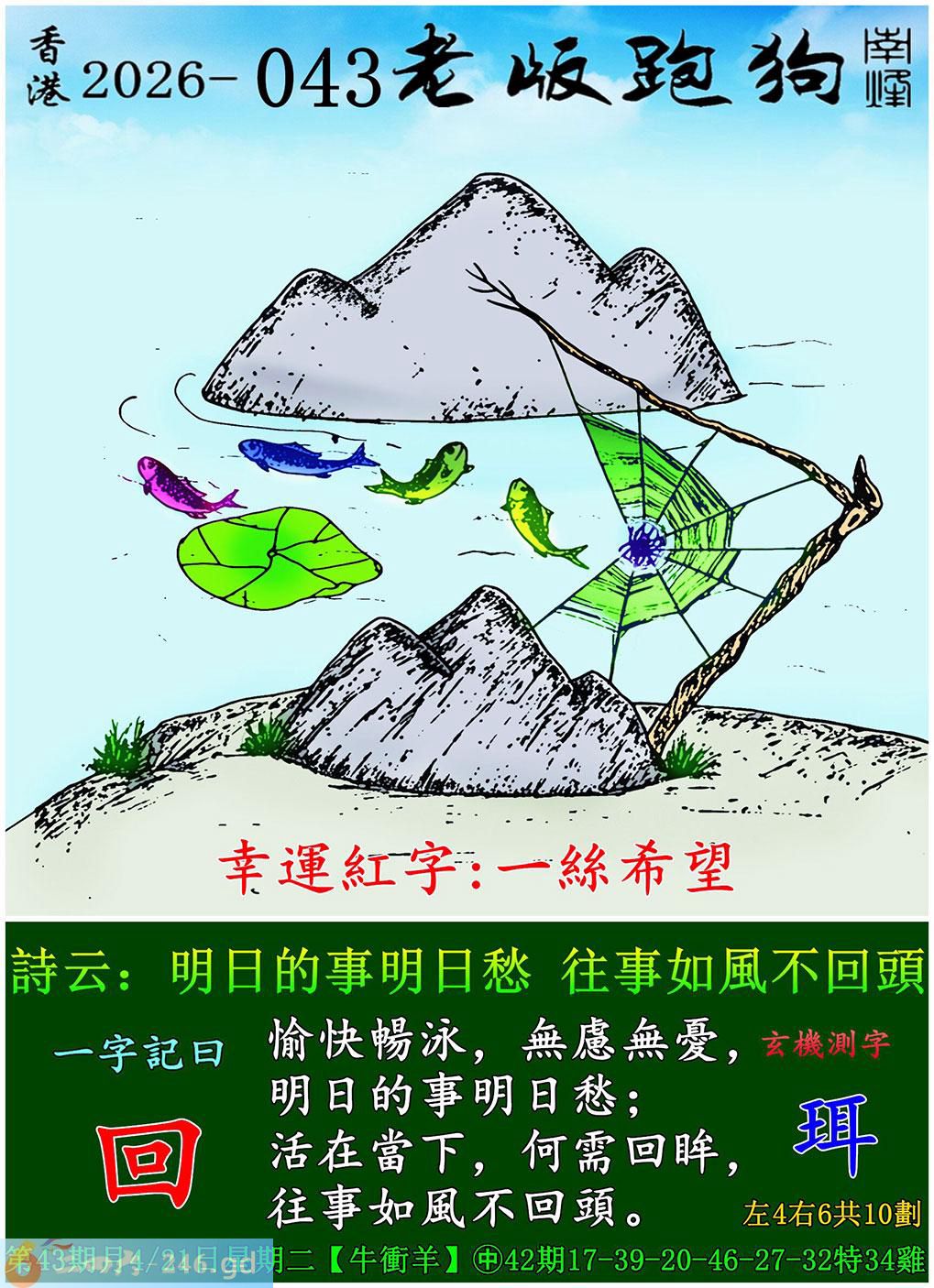 043期老版跑狗一字記之曰:【回】 詩雲:明日的事明日愁,往事如風不回頭。